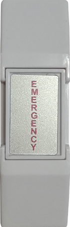 Fehér színű pánikgomb, EMERGENCY felirat, NO/NC kontaktus. |